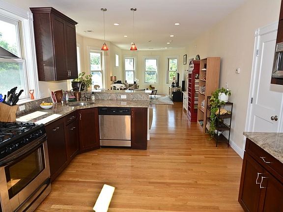 Sun splashed 2 bed, 1.5 bath condo with parking and central A/C in an excellent Cambridgeport location. Perfect mix of character and modern features. Beautiful lay-out with living room, dining room and kitchen in spacious open plan with recessed lighting. High ceilings and hardwood floors throughout. Master bedroom has a walk in closet with a jack and jill bathroom to the second bedroom. Large bathroom offers granite counter tops, tub/shower and double vanity. Modern kitchen, granite counters, stainless appliances, upgraded cabinetry and a breakfast bar. Washer/dryer in unit and lots of basement storage included. Directly across the street is a wonderful small park/children's playground. Convenient to Central and Harvard Squares, the Red Line subway and all that Cambridge living has to offer.