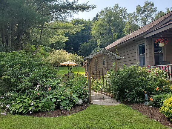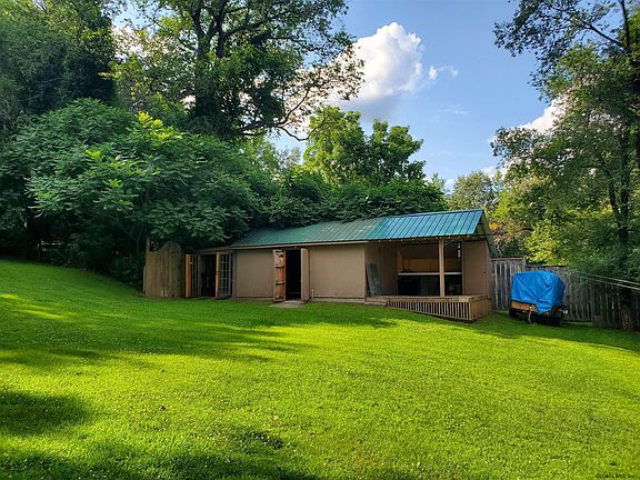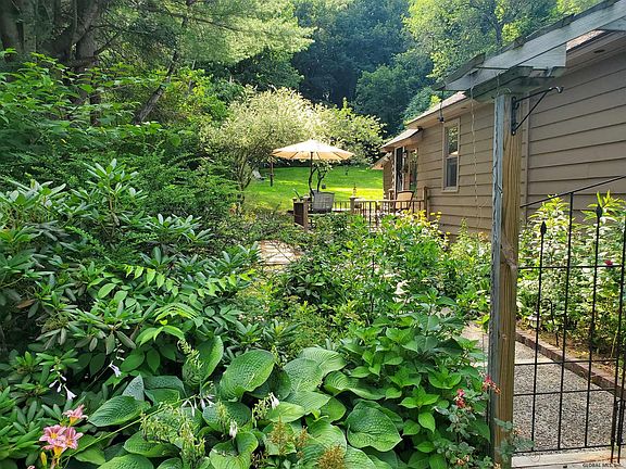You have been waiting for this home! Adorable spacious bungalow with 3 bedrooms, living room, family room with fireplace, large foyer/mudroom with pellet stove, eat in country kitchen and living room. The outdoor area is just as unique with large carport, garage, workshop and additional modern mancave/shecave! Beautiful landscaping, patio, side deck, water fountains, storage sheds. Dry basement with closet, laundry hookup and plenty of storage. All REAL stone features. Property line runs with Pine Trees and hedges. Looking for a buyer that will love it as the current owners have!!