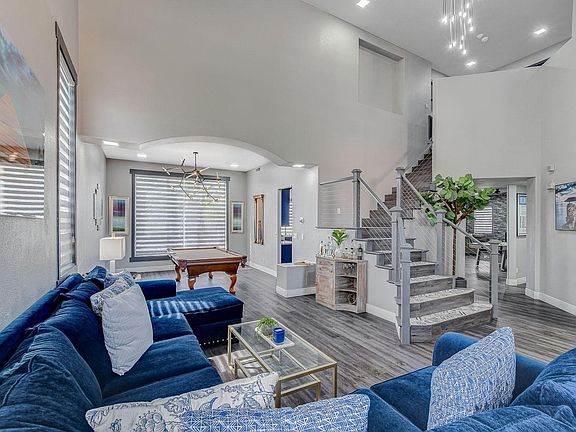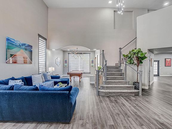 UNFURNISHED or available Furnished at $5000 per mo. SHORT or LONG term available. Beautiful contemporary entertainer's home. Luxurious, spacious property with Nearly 4000 sq ft, over 10,000 sq ft of grounds. Custom staircase, cabinets, fans, lighting fixtures, Spacious kitchen with quartz countertops. Extensive open living areas, spend time with family & friends relaxing by fireplace or entertaining. Upstairs offers a huge owners suite with double walk in closets. Beautiful owner suite balcony with spiral staircase for backyard entry.Travel outside to mature pristine landscaping that surrounds an inviting sparkling pebble deck, beach entry and pool. Charming lighting throughout backyard. Stunning, unobstructed mountain views. (Unfurnished with the exception of TVs) 1 yr Tenant pays for Pool and Landscaping. trash and sewer & Utilities