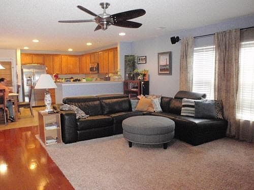 This is a Beazer ''Quincy'' Plan, with all the Bells & Whistles! 5 Bedrooms plus Loft/Flex Space, 3 Full Baths. 3 Bedrooms including the Master & 2 Full Baths on the 1st Floor. Excellent Condition! Hardwood Floors in Foyer & Great Room. Upgraded Cabinets with Crown Molding, Lazy Susan, & Pullout Shelving. Upgraded Plumbing, & Lighting Fixtures. Huge Kitchen includes Beautiful Stainless Appliances, Corian Countertops, Canned Lighting. Master Bedroom is 14x18 w/Giant Walk-in Closet. Bath provides Raised Vanity & Linen Closet. Ceiling Fans in All Bedrooms & Great Room. Lots of Closets & Storage w/Shelving & Organization. Surround Sound Wiring & Security System. 10x14 ft. Screened Porch & Privacy Fenced Back Yard w/No neighbors behind.