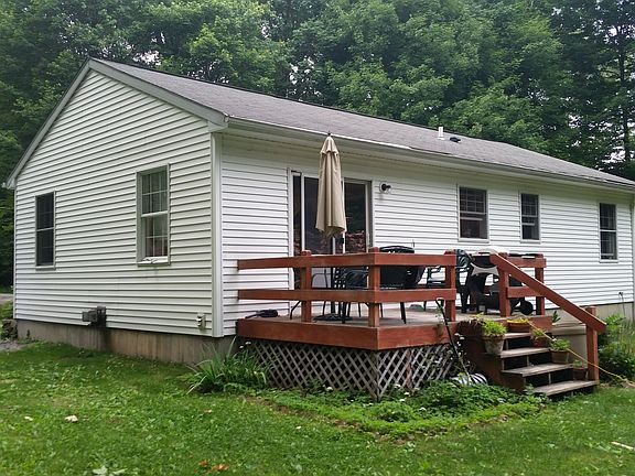 Set just off the road in a quiet beautiful rural setting on 4.4 flat acres bordering park land. Three bedroom, one bath, large basement. Lots of trees, springs, and stonewalls. Great shape, excellent location, lots of potential.