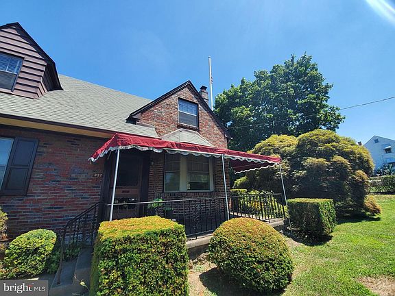 Handsome Brick Cape with 3-4 Bedrooms on large lot with 2 car Garage. Front Patio with awning, Freshly painted interior. Living Room with hardwood floors & fireplace, Spacious Eat in Kitchen, Ceramic Tile Full Bath with tub/shower combo. 2 Bedrooms. UPSTAIRS has 2 Rooms (Bedroom & Bonus Room), rough in for full bath. BASEMENT is full, partly finished, bar, workshop, laundry, 1/4 bath. Rear Patio overlooking large level yard. 2 car detached Garage and adjoining parking pad with access from rear alley. Wonderful private yard, handsome stone wall along Burmont Rd. The home is larger than it looks and offers flexible living options.