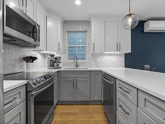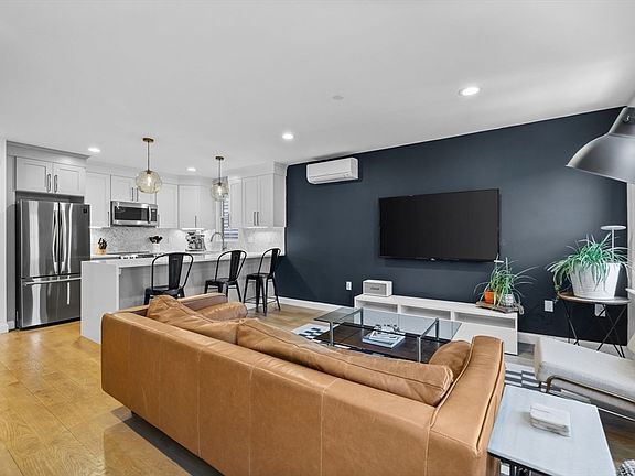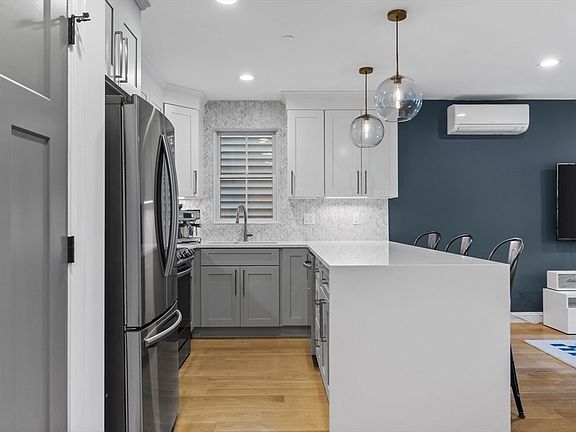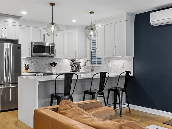 Experience the allure of this rare, one-of-a-kind penthouse 1 bed, 1.5 bath duplex gem in vibrant East Boston. Enter the main level and you're immediately struck by gorgeous white oak floors, high ceilings and flawless interior design. Prepare to entertain guests in this incredible chef's kitchen fully-equipped with floor-to-ceiling custom cabinetry, stainless steel appliances, quartz countertops complemented by a timeless herringbone backsplash and the convenience of a half bathroom. Head upstairs to the oversized primary bedroom with ample closet space and ensuite bathroom. Being upper-level with southern exposure, an abundance of natural light bathes the home throughout the day. This impeccable layout wastes no space and comes complete with in-unit laundry, recessed lighting and high-efficiency heating and cooling. Outside, embrace the outdoors on the massive common back patio. Located next to Day Square just moments from the Airport T stop (Blue Line), YMCA and Bremen Street Park.