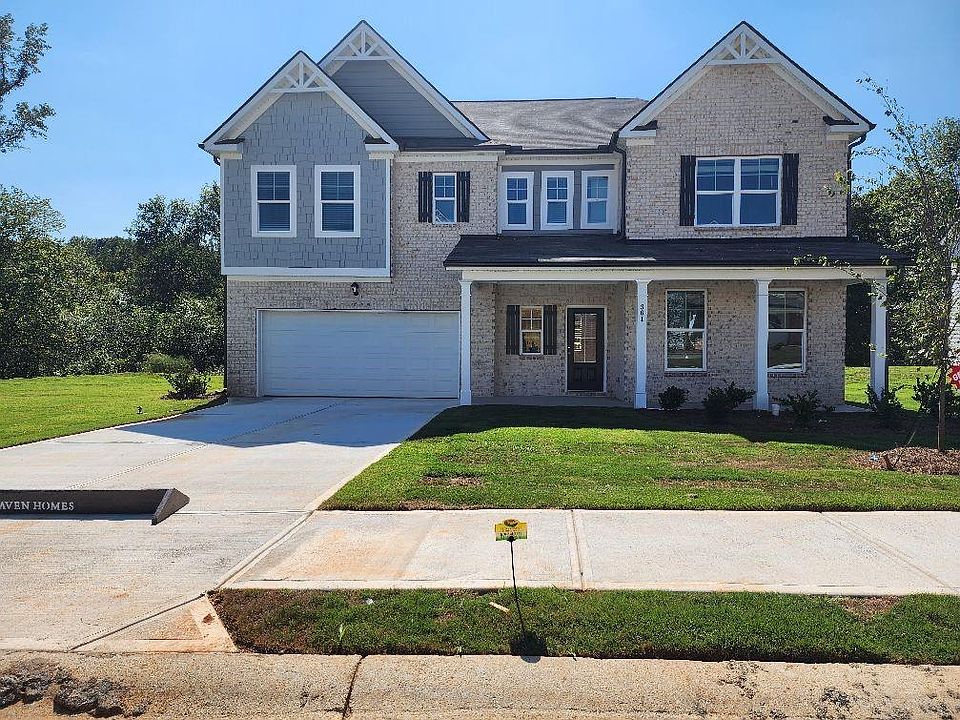 ASK ABOUT OUR 4.25% INTEREST RATE! 2-1 Buydown!! ( East Facing ) ...NEW CONSTRUCTION: THIS STUNNING! Leighton Floor Plan 5 Bedroom / 3 Full Baths, Media Room, Spacious Kitchen, SHOWS OFF Distinctive Designer Brick Accent on All Sides. This magnificent home Upon entry, you're greeted by a guest bedroom and a full bathroom on the main level, providing convenience and privacy for visitors or multigenerational living arrangements. The layout includes a formal separate living and dining room, perfect for hosting gatherings or enjoying dinners. The heart of the home lies in the spacious family room, featuring a sleek Floating Fireplace, that adds warmth and ambiance to the space. The Beautiful Gourmet Kitchen, equipped with 42-inch cabinets with crown Mouldings, granite countertops with Large Kitchen Island offering ample workspace for meal preparation and entertaining. Upper level, you'll discover a haven of relaxation and entertainment in the MEDIA Room a cozy retreat for movie nights. The highlight of the upper level is the expansive lovely master suite with 9-foot Vaulted Ceiling, huge walk-in closet, offering abundant storage space for your wardrobe essentials, Master Tile Spa Shower and Separate Tub. 3 Secondary Spacious Bedrooms. Pool Cabana Tot Lot Amenities. If you enjoy outdoor activities, you're in luck- we're just minutes from the State Park, and if golf is your passion, Chateau Elan Golf club is within 15 miles and Community is near the Gwinnett County Airport. Stock photos. ( Lot 34 )