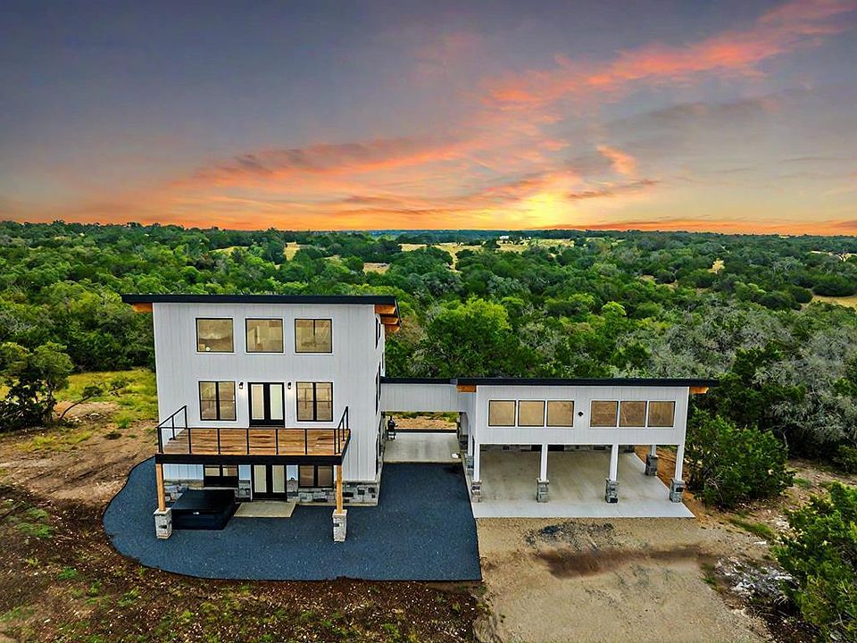 Welcome to Your Hill Country Retreat! Experience refined Texas Hill Country living on 16.97 private acres where sophisticated modern design meets the beauty of nature. This newly constructed 3-bedroom, 2-bath home showcases clean contemporary style, light-filled open spaces, and breathtaking panoramic views that invite relaxation and connection with the outdoors. Currently operating as a successful short-term rental that sleeps ten, the property conveys fully furnished and includes future bookings—offering a true turnkey investment opportunity. Alternatively, it's perfectly suited as a private getaway or full-time residence. Inside, an open-concept layout features expansive windows, sleek finishes, and seamless flow between the living, dining, and kitchen areas—ideal for entertaining or quiet evenings at home. The modern kitchen anchors the space with stylish design and functional elegance. Step outside to enjoy the natural serenity—soak in the hot tub under the stars, wander the unspoiled acreage, or create your own trails and picnic spots. Additional features include a 10x32 storage building for tools and equipment, plus an unfinished bonus room above the carport—ready to become a guest suite, office, studio, or gym. Located in the heart of Texas Wine Country, this exceptional property combines turnkey income potential with space to expand—offering endless opportunities to live, relax, and invest in Fredericksburg's premier Hill Country lifestyle.