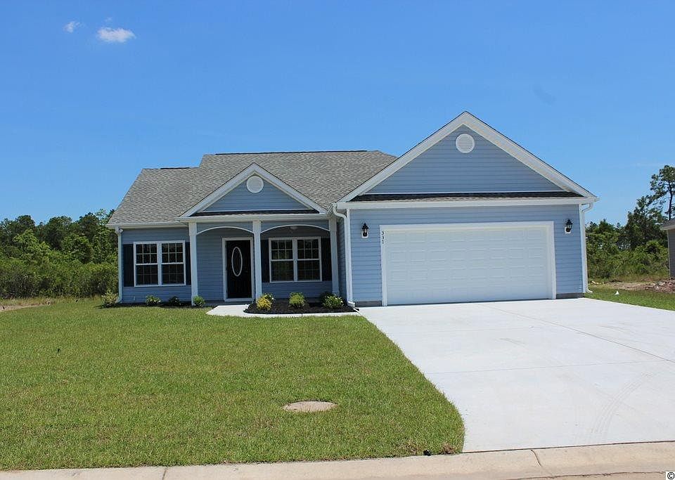 The Pecan plan is a single story ranch home that incorporates an outstanding list of included features in a very competitively priced new home. Relaxing front porch, enlarged rear patio, open floor plan, and split bedrooms. Spacious Master bedroom and bath, 2 additional bedrooms, each with its own ceiling fan, and another bath on the other side of the home. Kitchen has stainless steel appliances, including a side by side stainless steel refrigerator, solid wood cabinets with crown molding, pantry closet, breakfast counter, and lots of upgraded countertop space. Spacious living room with cathedral ceiling. Private master suite has 2 walk-in closets, garden tub, shower, high rise commode and 2 raised height vanities. Vinyl flooring thru-out the home. Rear screened 6'x23' porch and 10'x23' patio. Finished and painted spacious 2-car garage with an electric garage door opener, laundry sink, and pull down stairs to attic storage. Rear yard abuts wooded conservation area. Irrigation system, gutters, mailbox, sodded and landscaped yard. Future community pool. Award winning local builder. Aynor Schools. Less than 1 mile to Hwy 22, within 30 minutes of Myrtle Beach. Video is for illustrative purposes only and may be of a similar home built elsewhere. Square footage is approximate and not guaranteed. Buyer is responsible for verification.