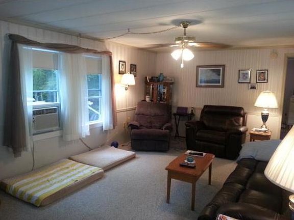 Very affordable, well maintained, manufactured home on its own 1.3 acre lot in a beautiful residential neighborhood. Excellent condition and layout with large living room, fully appliances eat-in kitchen, 2 good sized bedrooms, There is also a basement workshop, or storage area and plenty of parking on this great 1.3 acre wooded lot.