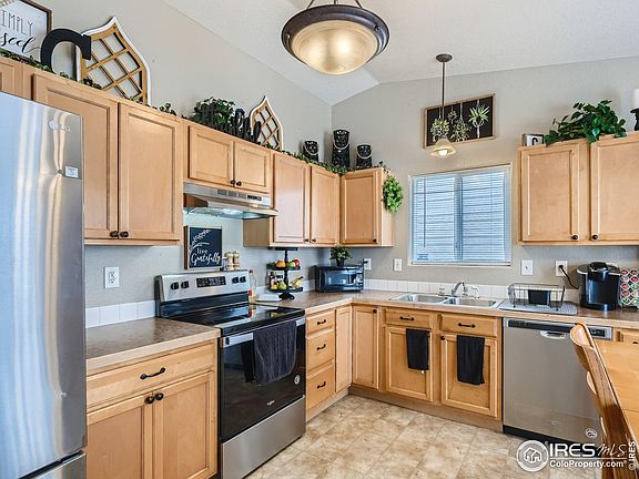 Your Search is over! This well cared for, South facing, fully finished ranch style home boasting 5 beds, 2 baths, lots of storage, rec room, vaulted ceilings and no neighbors behind you is available now! Don't pass up on this best buy in Riverview Farm that boasts newer paint, New Stainless Steel appliances added in 2022, newer water heater and new AC installed in 2022! Spacious open floor plan that has a great flow throughout with vaulted ceilings and beautiful Colorado natural light, big kitchen and 3 sizeable bedrooms on the main floor plus a large backyard with no neighbors behind! Basement is fully finished with 2 additional large bedrooms, beautifully updated bathroom, an entertainment area and extra storage room or flex area that could double as a play area or office space. Close to shopping, entertainment and easy to commute to and from, this home has it all!