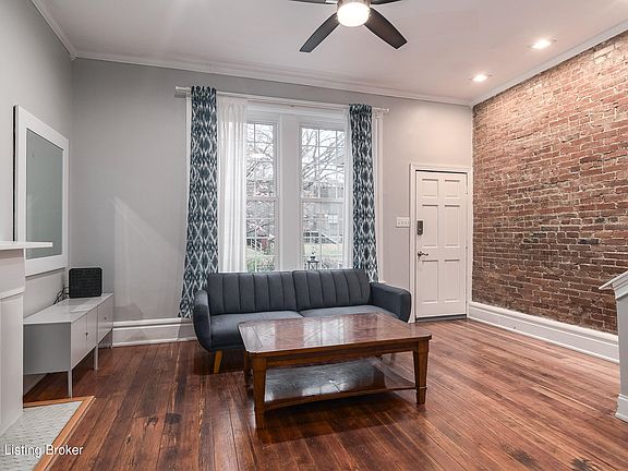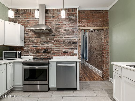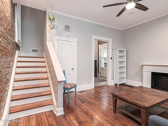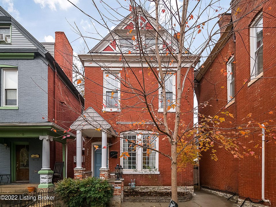 historic charm. Refinished hardwood and updated mantels highlight the historic preservation, complimented with updated plumbing and electrical. Exposed brick, stainless steel appliances with range hood stove and quartz countertops complete the kitchen. Off-street parking is available for 2 vehicles that guests will appreciate. Multiple outdoor spaces for enjoyment, including a new 1st floor rear concrete porch, a large wooden 2nd floor deck, and a beautiful front yard. Seller is willing to sell existing furniture in the ho