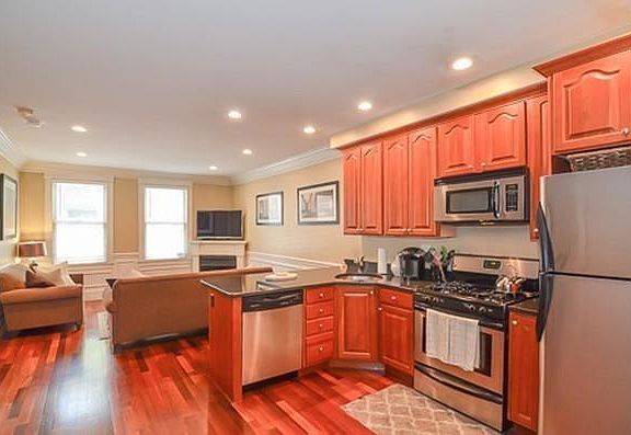 Move in Ready, First floor 2 bed with Exclusive Deck/City Yard! This spacious unit features tall ceilings, gorgeous cherry floors, modern open layout, granite/stainless kitchen with breakfast bar, recessed lighting and fine attention to detail with 9" crown molding, wainscoting, and corner fireplace in the living room. Unit offers Large Basement Storage. An Ideal South Boston Location, Short walk to Red line Train and steps to great restaurants (Loco, Lincoln, Capo). Don't Miss This one!! Open Saturday 5/19 12-130, and Sunday 5/20 12-130. Seller will be reviewing offers, if any, Monday 5/21 at 5pm.