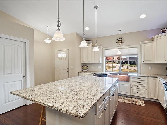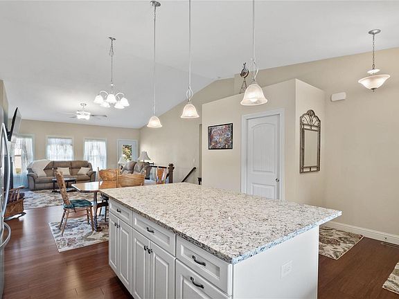 Expansive, "like new" 4 bed 3 bath ranch home situated on large lot towards the back of cul-de-sac. Built in 2018 by owners w/thoughtful upgrades from geothermal heating/cooling, covered porched with built in gas grill, oversized finished 3 car garage are few of the noteworthy features. Custom, light cabinetry with granite counter tops, stainless steel appliances, extra-large island encompass the kitchen. Neutral bamboo flooring, vaulted ceilings throughout the dining area & living room. Sizable master suite, walk in closet & master bath w/ double sinks, &walk in shower. 2 more bedrooms, hall bath, office, laundry room, and 1/2 bath complete main level. Partially finished walk out basement with full kitchen (appliances stay), full bath, and additional bedroom.