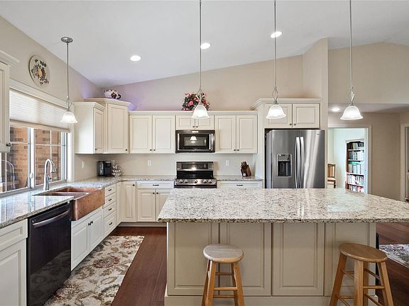 - Open Floorplan, Vaulted Ceiling(s), Walk-In Closet(s), Kitchen Island, Custom Cabinetry, Eat-in Kitchen, Granite Counters, Walk-In Pantry, Double Vanity, Shower, Kitchen/Dining Room Combo