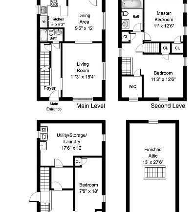 • Level 2 Rooms: Bath Main, 3 Bedrooms