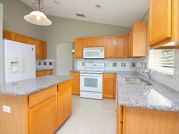 Meticulous and spacious 4 bedroom 2 bathroom fully fenced home. Porcelain tile throughout. Granite counter tops. Side by side refrigerator, stove, microwave, dishwasher. Island and closet pantry in kitchen. Lots of living space, Living room, dining room and family room! Split bedroom floor plan. Master bedroom is very roomy with large walk in closet. Master bathroom boasts a separate garden tub and stand up shower. Indoor laundry room with washer and dryer hook ups. Neutral colors throughout. Sliding glass door leads to the private backyard. Highly upgraded fixtures and touches throughout. Two car garage. The community boasts a community pool and playground. 15 minutes to Disney. Close to shopping, restaurants and more! Don't miss out on this great opportunity!
