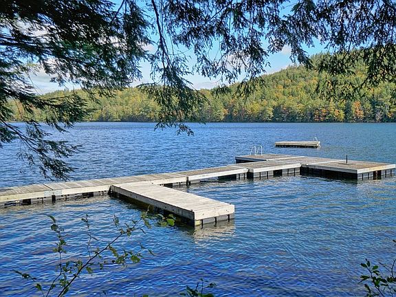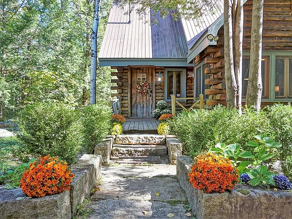 Situated along 400+ feet of beautiful Horseshoe Pond shoreline, where national forest and conservation land ensure the preservation of its natural setting. This 4,600' Adirondack lodge is nestled among 3.47 acres of wooded grounds, mature Rhododendrons, gravel pathways, stone walls, herb and perennial gardens. Built in 1990 the home has eight rooms, built-in shelves, charming window seats, and unique windows providing light and views throughout the home. The stunning focal point is the great room with a massive stone fireplace, French doors to the outside deck, soaring vaulted ceiling. Amazing wide pumpkin pine floors are throughout the entire home. The kitchen boasts a Viking 6-burner gas range, two sinks, pine cabinets, stone counters, dishwasher, under- counter drawer refrigerator and freezer. A special feature this Realtor loves are retractable screens located in the master bedroom, kitchen & living room. logs from Maine, peeled on site. Granite throughout the property was locally sourced. The full basement has a walk-in cedar closet, firewood elevator to the living room and two double walk-out doors to the covered storage areas. There is a log screen house complete w/ping pong table, Log & lattice Gazebo & equipment shed. Finally a 3 bay garage w utility room and upstairs w its own separate entrance and private deck an In Law apartment, w one bedroom, full bath, living room and kitchen. Located on the widest & deepest park of Horseshoe. 6 MTHS PLUS RENTALS, 6 HSP MOTOR