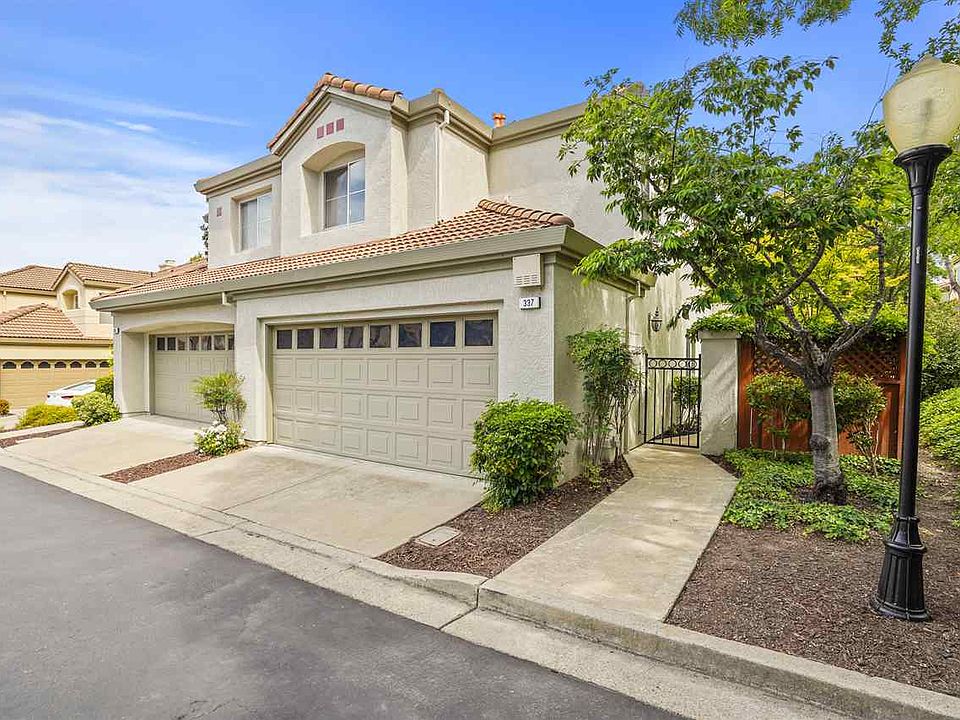From the moment you walk through the gate, you will say "This feels like home!" With its Carmel-inspired garden area, shaded patio and light-filled interior, this attractive 3 BR/2.5 BA home invites you to linger. Located in the Vista Pointe gated community, this home enjoys privacy and a prime end-unit location. With an open and airy living room/dining area, and a large eat-in kitchen, this property has a wonderful sense of spaciousness and fabulous living spaces. The upstairs master suite features vaulted ceilings and a generously sized master bathroom. Commercial-grade w/d and newer dual-zone HVAC system. Low HOA dues cover the roof, exterior maintenance, community pool/clubhouse, and a security gate. Take advantage of the excellent San Ramon schools and the property's proximity to City Center Bishop Ranch, the Bishop Ranch Business Park, Trader Joe's, Whole Foods, parks and nearby freeways. Come make this property your own, but don't wait because at this price, it won't last!
