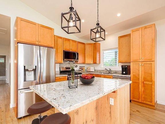 What a pleasant and wonderful surprise - this exquisite, newer 3-bedroom, 2-bathroom custom home with 2-vehicle carport that is nestled in the peaceful countryside of the beach town of Wailua, is just a stone's throw from the bustling town shops and restaurants, and a leisurely jog away from the beach.