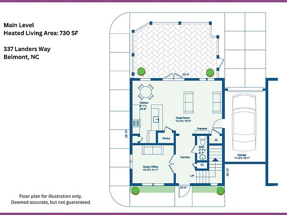 Updated mantle and fireplaceEnd-unit residenceAbundant natural lightOversized brick patioDistinctive pergola-style timber frameVersatile office or studyGreen courtyard in front