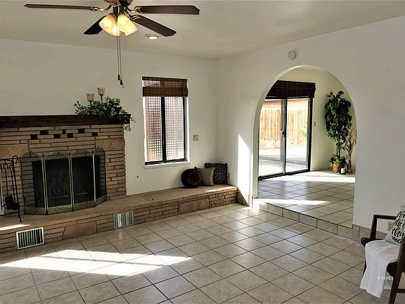 SOUTHEAST ABODE REFRESHED! Home has all new interior and exterior paint. New refrigerator and dishwasher. Walk into a home laid with ceramic floor tile all throughout. Stepdown living room with a wood burning fireplace for those upcoming cold desert winter evenings. Set up for a gas insert. Also, two large windows that bring in loads of light during the day. Archway leads into a roomy dining room with sliding door to the rear patio. Kitchen hosts stainless appliances, granite countertops, Jenn-Air Electric downdraft range, redwood-stained cabinets, and a large island for extra cooking space. Master bedroom with double entry door. Master bathroom has upgraded vanity, double sinks, new toilet, walk-in shower, and a handsome-sized walk-in closet. Other bedrooms with fan/lights and sliding closet doors. Spacious backyard and ready for any landscape ideas. Side RV area with iron gates large enough for an RV or a large trailer. Front row seats to the July 4th city fireworks display right in your own backyard! Kenmore washer/dryer, Rainsoft water softener system with reverse osmosis filter all included! Home is cooled by Goodman SEER 14 AC! ROOF CERT ALREADY ISSUED BY ROOFTOPS USA!