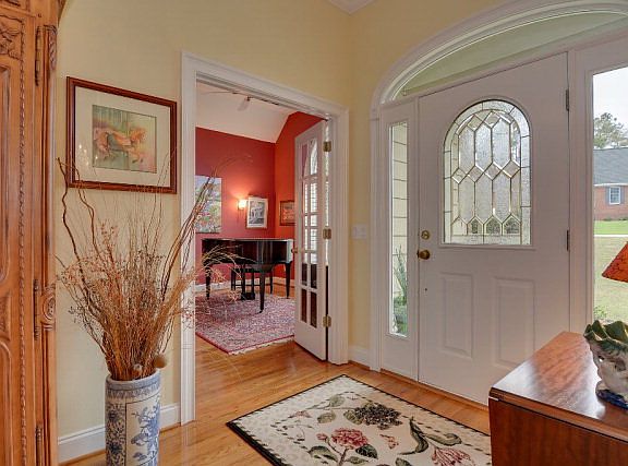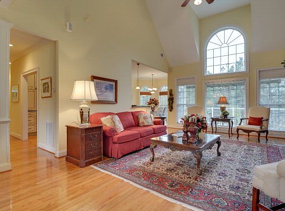 Extraordinary Southern Living home w/totally private backyard oasis with your own "Amen Corner" stone bridge which matches the natural field stone on the house, driveway entrance columns and interior fireplace. Gorgeous Owners suite opens to California deck and overlooks the gunite Salt Water Pool and Spa. Custom Kitchen with tongue and groove cabinets. Formal Dining, Office/Music room, large Laundry Rm that can be converted back to BR #5. Lower level walk-out to pool has 2nd Master w/sitting room OR 2 Guest BRs with adjoining bath. 24x36 open entertaining area for pool table, game table and seating/TV section. 700 Bottle Wine Cellar. Three lots consolidated into one for driveway expansion with stone column lighted entries and island in driveway with palm trees and landscape lighting. Unique property surrounded by acres of woods within Private Gated Community.