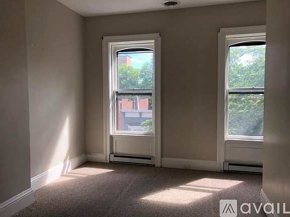 2 Bedroom, 1 Bath, top floor apartment, Center Square near Empire Plaza. Recently renovated, coin operated laundry room on premise, hi efficiency-low cost heating and central air-conditioning, pets allowed for pet fee ($15/mo), walking distance to shopping and Lincoln Park. Owner pays for water and garbage removal. Renter responsible for taking trash to curb on trash days. Renter pays all other utilities. Pet fee is $15/mo. Parking on on-street. First month's rent and security deposit required at signing of lease.