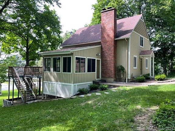 Remodeled and move in ready. This 1980 colonial has been meticulously updated to today's style. Hardwood flooring throughout. New kitchen and appliances with granite counters and all baths updated. Bright sunny first floor has an open floor plan. Three bedrooms plus two full and one half baths. Full width living room features a beautiful stone fireplace with raised hearth. Dining room slider opens to a spacious wrap-around deck overlooking wooded rear yard. Bright, heated sun room is a four season favorite adding 240 sq ft of year round living space. Lower level is a finished family room that walks out to rear patio and offers a half bath, finished laundry room and workshop/hobby room or exercise room. Lower level could be in-law suite. Newer heating and central air conditioning. Public water and public sewer. Nice large storage shed. Conveniently located on Farmington's east side close to UConn Health Center, Jackson Labs,ESPN, shopping and major highways. The address is 337 Main St. with entrance off of Mountainside West street. Must see!