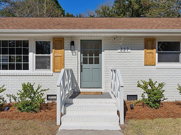 AMAZING LOCATION! This expansive brick ranch home is situated on a .35 acre lot and is just 3 1/2 miles from historic downtown Charleston! Beautifully remodeled and designed to contemporary standards, this home features 3 bedrooms and 2 full bathrooms. Entering the home you'll discover a spacious, open concept floor plan that is perfectly suited for family gatherings. The main living space includes the living room, kitchen, and dining area - filled with natural light during the day and the warm glow of the electric fireplace at night. The vast living room allows for a multitude of creative furniture configurations and provides access to the sizable back deck through sliding glass doors.An electric fireplace trimmed with skinny-lap wall paneling, built-in shelving, cabinet storage, and sconces creates a contemporary, cozy ambiance. Highlighted by gorgeous, on-trend light pendants, the kitchen island is absolutely stunning. The island features a quartz countertop, farm sink, dishwasher, extra storage behind the barstools, and ample room to dine. Behind the island is a high-end 36" dual fuel range (gas cooktop, electric oven), a custom 36" vent hood with stained wood shelving flanking each side, subway tile backsplash, and a 36" stainless refrigerator. This kitchen is truly spectacular! Next to the kitchen is the dining area with a lovely woven pendant. Just beyond the dining area is a dedicated laundry / pantry room. Moving down the hallway toward the right side of the home you'll find 2 bedrooms and a full hall bath. The hall bathroom introduces gold and green design elements and a tub surrounded by white subway tile. At the end of the hallway you'll discover the grand, luxurious primary suite. The primary suite offers one standard closet with bi-fold doors and one walk-in closet with custom shelving and hanging rods. Beyond the walk-in closet lies the primary bathroom - a luxurious, spa-like masterpiece. Entering the primary bathroom you'll find a bold dual vanity, all new plumbing / lighting fixtures, and large format floor tiles. At the end of the bathroom is the glorious wet bath that features a soaking tub, shower, extra large format wall tile, and a herringbone pattern floor tile. The vent fan offers bluetooth connectivity for those that enjoy listening to music while they relax. 337 McClain is located in a Shaded X flood zone with no HOA! Listing agent has ownership interest and all owners are licensed real estate agents.