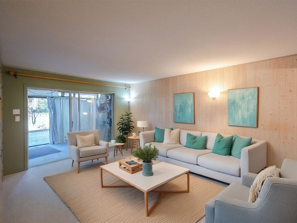 Welcome to this bright corner-unit condo, offering a perfect blend of comfort, convenience, and vibrant community living. With level entry and easy access, this home is thoughtfully designed for effortless everyday living and full accessibility. A standout feature is the enclosed sun patio, where you can relax and enjoy throughout every season. Inside, the open floor plan creates an airy feel, highlighted by a spacious living room with a functional built-in wall unit and an inviting dining area perfect for entertaining. The kitchen provides ample cupboard and counter space, complemented by a charming pass-through window that keeps the space feeling connected.
