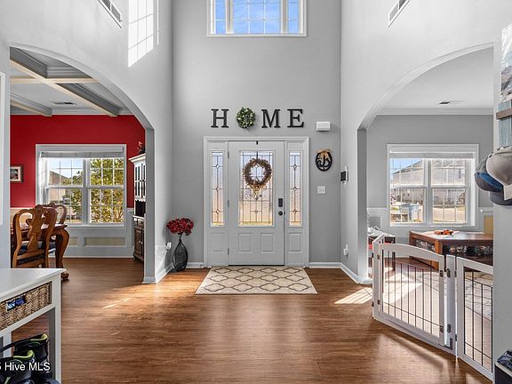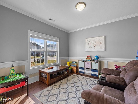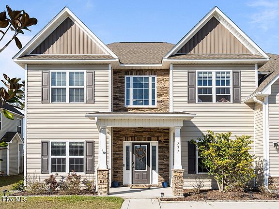 Summer movers here is your chance for the perfect home! Welcome to this beautiful Carolina Plantations 4 bed/3.5 bath home. Located just minutes from the city limits of Jacksonville with no city taxes. As you enter the home you are immediately greeted by the two-story foyer. To your left you will find a versatile space that could be used as an office space, a playroom, or a formal living room depending on your family's needs. Across the foyer you'll find the spacious formal dining room that features a coffered ceilings and elegant molding. As you continue toward the back of the house, find your open & spacious kitchen with an abundance of cabinet space, stainless steel appliances, granite counter tops ,recessed lighting and a pantry. The peninsula has attractive pendant lighting above it and room for seating for 4. Between the kitchen and great room is a matching bar with counterspace and a wine rack. The great room features an electric fireplace boarded by built in book shelves. A half bath at the end of the hall completes the lower level of the home. Upstairs you will find the large master bedroom complete with a trey ceiling and private sitting area. The oversized master bath features a soaking tub, stand up shower, linen closet and two full vanities with plenty of storage underneath. The huge walk-in closet has all the storage space you have been looking for! Down the hall there is an extra bedroom with private bath which would be perfect for a guest suite. Two more bedrooms, a full bathroom, and the laundry room round out the living space upstairs. Outside you will find a large backyard complete with covered patio and fencing. This home is in great subdivision that has a neighborhood playground moments away on bike or foot. Conveniently located to Jacksonville's shopping and dining and an easy commute to Camp Lejeune or the New River Air Station. Only reason this fine home is for sale is because duty calls elsewhere.