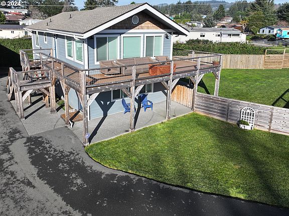 HOME SWEET HOME- This two-story delight is centrally-located in Brookings, close to the beach, walking distance to shopping, plus facing SW for fabulous sunset views! The 1848 square feet includes 3 bedrooms, 2.5 bathrooms and a large wraparound deck on the second floor. This beautiful home was completely remodeled including all new plumbing and electrical in 2018. Breath in the fresh smell of the ocean air and listen to the sounds of the sea from the comfort of your own deck. With a family room, laundry room and 2 spacious bedrooms and a bathroom on the bottom floor, this house has been tastefully remodeled and updated to include luxury vinyl plank flooring, lighting fixtures, custom cabinetry and beautiful tile work. Upstairs you will find a livingroom, dining area, kitchen with stainless steel appliances as well a primary bedroom and 1.5 bathrooms. The primary bathroom includes a walk-in shower and double sinks. Additionally, both the primary bedroom and one bedroom downstairs have sliders to the backyard, hot tub and deck. Enjoy the hot tub in the private, fenced backyard. Bring your toys! Situated on a large .30 acre lot there is room for an RV and a boat with room to spare, as well as the detached garage for your vehicles. Furniture available to purchase outside of escrow.