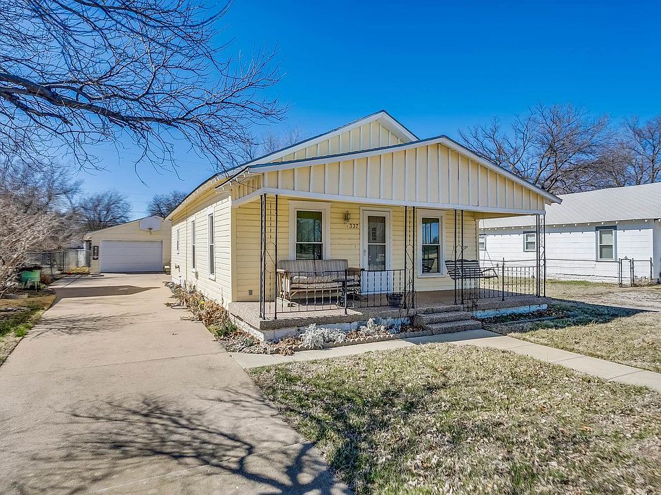 Call our agent on duty at to see this home today! Outstanding opportunity in this well maintained home in Delano. This home features a roomy 1008 sq ft floor plan that offers a spacious kitchen and formal dining area complete with built-in glass china cabinet and an elegant tray ceiling. This home was recently painted throughout and has an updated bathroom. As an incredible bonus, the current owners invested over $9,0000 into adding triple-pane vinyl windows throughout the home. The office was recently remodeled to include main floor laundry hook ups and has a dedicated outlet for a computer. This home is definitely a mechanic's dream as it offer a huge 24 x 24 ft garage complete with a 220 outlet, gas hook ups, and a furnace. The fenced backyard with concrete patio offers a great area for outdoor entertaining or you can enjoy peaceful evenings on the covered front porch of this quiet neighborhood conveniently located in the one of Wichita's most desired and walkable areas.