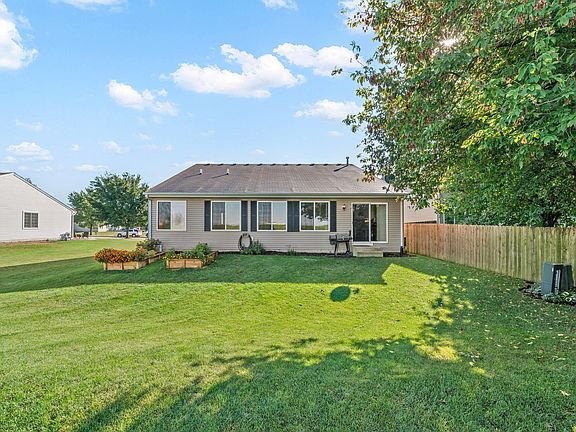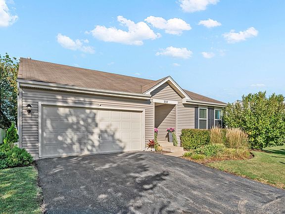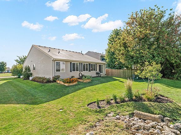 If your looking for a spacious open floorplan ranch home, this is it. Large living room with many options for use of space. Kitchen has ample cabinet space, concrete countertops, most appliances new in the last 2 years, new backsplash, a breakfast bar and table space. Sliding glass doors lead to backyard with raised planters for you to enjoy, professionally landscaped and convenience to recreation path. Master bedroom and bath features a separate shower and tub, double sinks and private commode. Two additional bedrooms and a full bath plus convenient floor laundry. Full partially finished basement provides 1800 square foot more of living/recreation/storage space. Attached 2 car insulated garage with above garage storage and workbench included. Close to parks and tollway access.