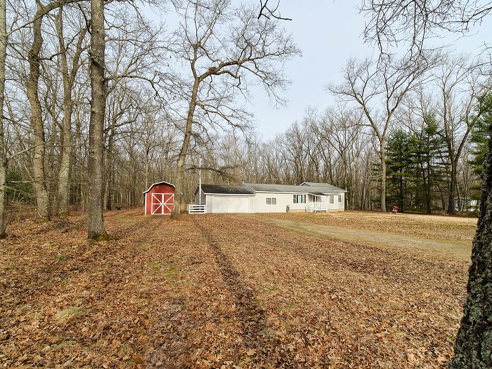 Peaceful and serene wooded five acre setting for your new home. This three bedroom has an updated primary bedroom with en suite bath and walk in closet. A second full bathroom is shared with the other two bedrooms. Woodstove in the breezeway for economical heating throughout the seasons. Storage shed for your toys and lawn maintenance equipment. Low maintenance exterior and attached garage. Located near endless recreational opportunities like fishing, hiking, boating, and trail riding. Shared driveway from Campbell Road.