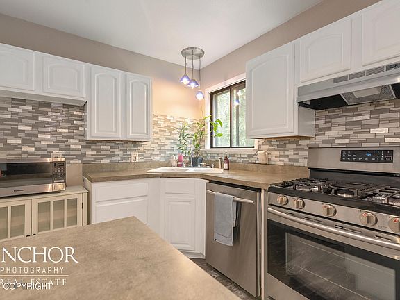 This 3 bedroom 1 bath house is centrally located in Palmer. The kitchen and bathroom have been updated along with some new paint throughout the house. The lot backs up to a green belt.The kitchen, pantry, dining and living room are on the 2nd floor. There are 3 bedrooms, 1 bathroom and garage entry on the lower level. The washer and dryer are located in the 1 car garage. Located less than half a mile to Sherrod/Swanson Elementary and 1.4 miles to the grocery store. 12.3 miles to Hatchers Pass, 6.6 miles to the Butte which makes this a great location to be in the middle of all the popular Palmer recreational areas.