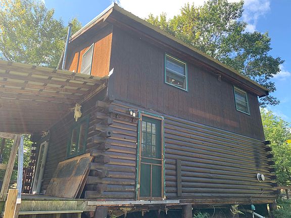 This is your chance to own your own private getaway on 11+ acres of peace and quiet. Great spot for the outdoor enthusiast and nature lover. Land is close to main snowmobile trails. This self contained year-round log cabin with wrap-a-round deck allows you to sit outside and enjoy the babbling brook and all the nature that surrounds the cabin and during the winter it's perfect to cozy up inside. The barn gives you plenty of space for toys or animals. Property also has a great campsite on the brook with camper that includes solar panels.