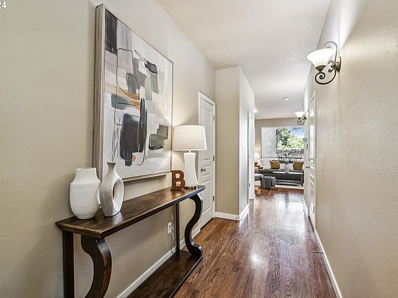 Welcome to your dream home! Nestled in a highly sought-after neighborhood, this charming 4-bedroom, 2.5-bathroom residence is the epitome of move in readiness. Step inside and be greeted by the timeless elegance of real hardwood flooring that graces the entirety of the downstairs plus new carpet and fresh interior paint. The inviting living room boasts a cozy gas fireplace, perfect for chilly evenings, complemented by built-in shelving, creating a warm and welcoming atmosphere. Entertaining is a breeze in the open-concept layout, where the kitchen takes center stage with ample counter space and a convenient pantry to keep everything organized. Slide open the door to reveal your own private patio oasis, ideal for enjoying morning coffee or hosting gatherings with friends and family. Upstairs, natural light floods through the windows, illuminating the 4 spacious bedrooms and a generously sized laundry room for added convenience. Retreat to the primary bedroom oasis featuring a walk-in closet and double sinks in the en-suite bathroom, offering a perfect blend of comfort and functionality. Location couldn't be better, with Orenco Nature Park, Quatama Park, and the Max line all within walking distance, allowing you to embrace the beauty of nature and the convenience of urban living. Plus, with Nike, Intel, shopping, and entertainment options just minutes away, you'll have everything you need right at your fingertips. Don't miss out on the opportunity to make this your forever home. Schedule your showing today and experience the perfect blend of style, comfort, and convenience in this must-see property!