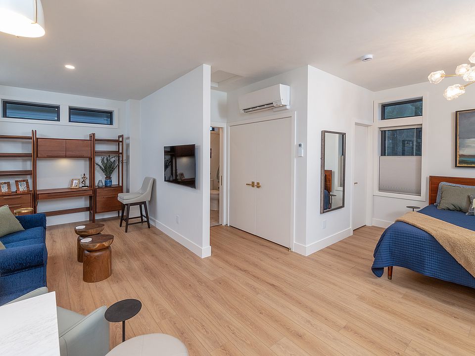 Bends best location and most Beautiful fully furnished ADU in town. Live across the street from the Deschutes River, 1/2 Block from Columbia Park, and steps from the Galveston Corridor! This Brand New 677 Square foot open layout loft is waiting for a tenant that appreciates quality construction and finishes. Luxurious spa like bathroom with heated floor and lighted makeup mirror. Walk in closet, queen size bed, and large wall mounted Television. Live and work from home with a built in desk and file unit with storage shelves. Internet and all utilities included. Off-street parking included. Lease term flexible 8+ months