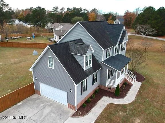 Remarkable home with 3 cozy bedrooms, 2-1/2 bathrooms, formal dining room, laundry/utility room, 2 bonus rooms (1 downstairs and 1 upstairs), a 2-car garage on a large 0.78 acre lot. The entrance foyer has a high ceiling with a window that allows natural light into this welcoming and elegant space. Home office room (could be used as a 2nd living room and/or any other desired use). The formal dining room sets the stage for memorable gatherings. The living room has a fireplace and it seamlessly connects to the kitchen area which impresses with sleek stainless steel appliances, quartz counter tops and classy backsplash. Bay-window breakfast nook between the kitchen and the living room. Upstairs you'll find a nice split floor-plan; a spacious master suite on the right side with its own generously sized bathroom featuring a walk-in closet, soaking tub, walk-in shower and dual vanities. From the top of the stairs towards the left you will find the remaining two bedrooms, a full bathroom, additional closet/storage space, and a large bonus room that could serve as a play/game room, family room or any other use you'd enjoy. The spacious back yard is nice. easy to maintain and tastefully designed to provide a high degree of privacy with a recently installed wooden fence; it even has a fire pit ready for the new residents to enjoy. The recently installed reverse-osmosis water filtration system is connected to the kitchen sink and fridge. The almost-new energy-efficient water heater is still under warranty. Well pump and septic regularly maintained and in optimal condition. The Cross Creek Neighborhood is located in the sought-after Topsail school district. HOA dues are unbelievable low; but the community has a sports field towards the entrance and a small-watercraft private ramp towards the back; both for the exclusive use of Cross Creek residents.