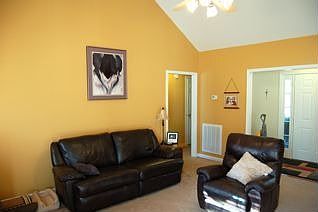 Found in Brittany's Garden is this charming, single level Ranch home less than three miles from the booming Trail Creek area. Features abound this brilliant home offering vaulted and trey ceilings, new, neutral paint colors throughout, decorative light fixtures and ceiling fans, & carpet and bamboo flooring. Greeted by a rocking chair front patio, you are welcomed inside by the quaint foyer opening to the oversized vaulted ceiling great room appointed with fireplace. Adorned with a large window providing ample natural lighting, the great room creates the perfect backdrop for enjoying time with family or entertaining. Keeping your guest engaged will be a breeze with multiple doors leading to the oversized dining area and kitchen. Quite large, the kitchens amenities are tripled with extra cabinetry, extra counter space including a serving and breakfast bar, canned lighting, and a complete stainless steel appliance package. Ample in size, the three bedrooms provide a wonderful private space with walk-in closets and quick access to the perfectly detailed full bath. At the end of the hallway you will find the entrance to the the owners suite. Oversized, this fantastic suite features a trey ceiling, 2 spacious walk-in closets with shelving system, and private ensuite full bath complete with walk-in shower, garden tub and oversized vanity. This home is sited on .98 acres providing large, level yards ready for fencing to create the ideal space. Completing the property is a full, partially finished basement, stubbed for one bath.