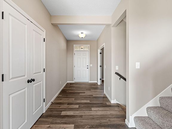 Beautiful lot with private backyard! This beautiful 2 story features three finished levels! A welcoming front porch and large foyer leads you into this clean lined and open concept floor plan. Oversized windows fill the home with natural light, the spacious kitchen has loads of shining stone countertop & cabinet space with an island and walk in pantry. Ceramic tile backsplash in the kitchen brightens the space farther and all kitchen appliances are included. Rounding out the main level is a convenient mudroom with a built-in bench and 1/2 bath next to the kitchen/garage entry and a great flex room at the front of the home. Upstairs, you will find 4 Bedrooms including the large and luxurious master bedroom suite with vaulted ceiling and a well placed laundry room. The family room in the finished walkout basement is HUGE. The family room is joined by an additional bedroom and bathroom and provides plenty of spaces for your family to hang out separately or together. Sod and inground sprinkler are also included.