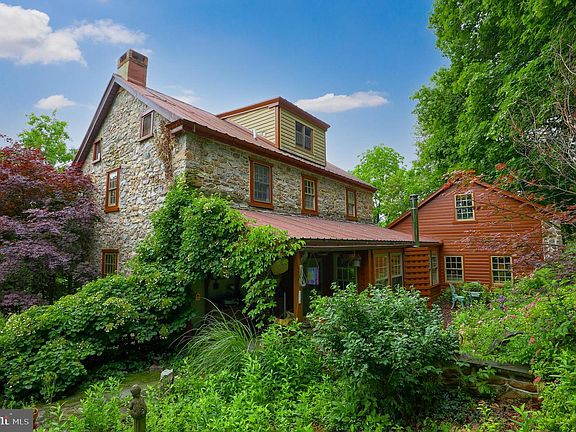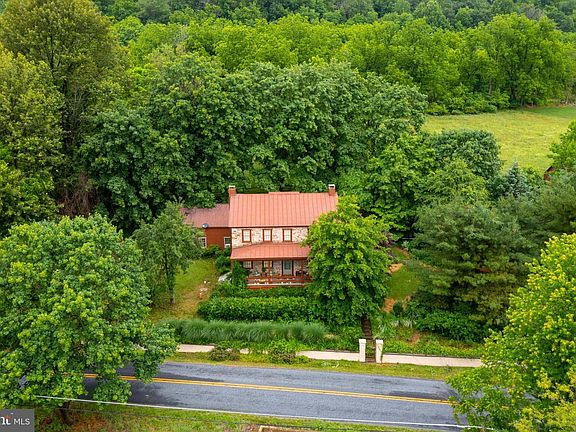 German Farmhouse 29 Acres On a sprawling 28.84 acres in Spring Hog Farm, a beautiful, historic German farmhouse is the highlight of this property's many features, boasting a gorgeous stone facade, metal roof, and covered front porch, perfect for enjoying the surrounding farmland views. Inside, youre immediately greeted by the character and charm of features like vaulted, wood ceilings, exposed beams, brick flooring, and large double windows of the dining room. The living room is highlighted by its own style of 9ft wood beamed ceiling with hardwood flooring, and built-in spice rack. The family room has not one, but two propane fireplaces creating separate sitting areas; one fireplace is built into the wood panel wall, while the other offers antique flare with thermostat connection. The space is also enhanced by laminate wood floors, extensive cabinetry, natural light from multiple, recently updated windows, and a nearby full bath with space to add a washer/dryer. Even the kitchen flaunts endless character from the large, walk-in fireplace oversized mantle, tile flooring, newer cabinetry complemented by original built-ins, butcher block countertops, recessed lighting, and access to the front porch, stealing the best views in the house. Upstairs, the Master Suite features hardwood flooring and a wood beamed ceiling with deep set windows, plus a large bathroom with multiple built-ins and closet storage, tile flooring, and shower. Right outside the Master is a cozy den with matching wood ceiling, hardwood floors, and deep windows. The separate second level above the Family Room has an additional bedroom with angled ceilings with wood accents and character built-ins for storage. Up another level, the third floor offers one, or even two, additional bedroom options with a full bath. Throughout the lower level are various spaces for functionality and leisure, from the finished rec room and full bath to the large laundry room with cabinet storage. The property also enjoys a large, 4-bay stone barn with electric, 2-car detached garage, three additional outbuildings for multi-use, a root cellar, and outhouse. But possibly its best feature is the awesome views of rolling farmland that surround you from every angle. **Additional 2.98 acre lot available for purchase with listing for $695,000 total. Will not be sold separately**