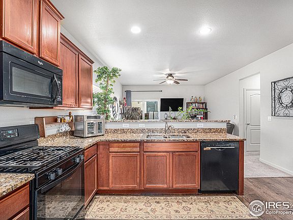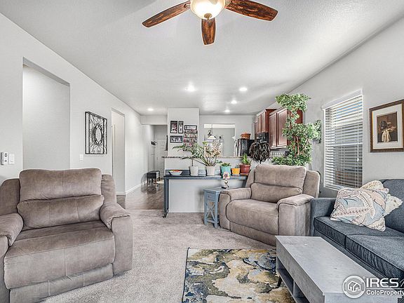 Welcome to this well kept and updated ranch style home in wonderful and affordable Lochbuie! Here you'll find a three bedroom, two full bath, two car garage with a low maintenance and well maintained back and front yard. The kitchen offers granite counters, plenty of cabinets, a pantry, gas range, and a newer refrigerator and dishwasher. The primary has a 5-piece bath and a walk-in closet. The two other bedrooms share their own full bath and the laundry is located by all bedrooms. Brand new carpet and interior paint in 2024, newer h2o tank, newer garage door opener and so much more. This home is conveniently located about 5 minutes from Brighton, 20 to DIA and 30 to down Denver. All appliances included.