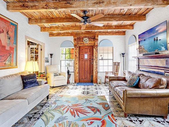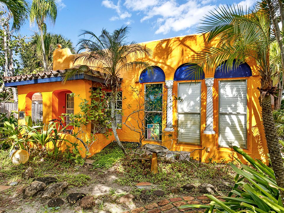 Exceptional INVESTOR opportunity to acquire this charming Spanish Mission Style two bedroom, one bath charmer with Florida Room on this lushly landscaped 50x121 lot in the coveted SoSo Neighborhood! Situated in the Belair Historic District, a block and a half from the intracoastal waterway. Utilize the characteristic charms and update the property with a brilliant period expansion in one of the hottest neighborhoods for growth in the Palm Beaches! Tucked in the middle of Pilgrim Road, this gem of a home offers timeless sought after features including pecky cypress ceilings and entry archway, original wood flooring in the bedrooms, graceful arches, a sizable log fireplace, barrel tile on porch entry and decorative tile flooring in the Florida room and living room. More.. Significant wrought aluminum gates with bronze Griffins grace the entrance of the Chicago brick lined driveway, leading to the detached garage piped with city water for the laundry.