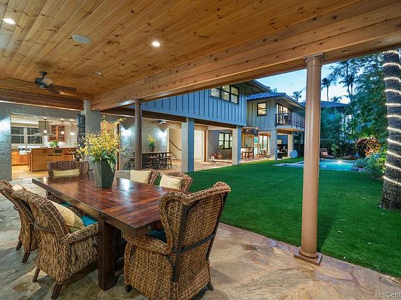 Fabulous luxury estate just one home from the beach in Portlock. Reminiscent of Hawaii's Territorial era, this unique home features a clay tile roof extended over wide wrap around lanais, custom floor to ceiling mahogany doors that disappear creating a seamless blend of indoor/outdoor living, a great room with vaulted Balinese style ceilings, reclaimed wide plank pine floors, gourmet kitchen with top-of-the-line appliances, family room, tiled pool and spa, 5 huge en-suite bedrooms, a spacious second level den, central AC, energy saving PV system, 3 car garage and more!