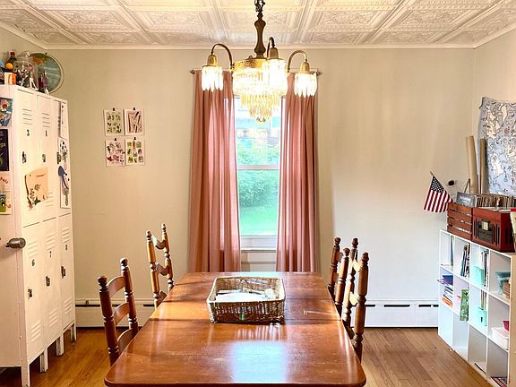 Looking for vintage charm? Look no further. 5 bedroom 1.5 bath 1934 brick colonial for sale on a quiet street walking distance to shops. Home boasts original built-in bookcases and other fixtures throughout the home including glass door knobs and skeleton key locks. New ceiling and wall details and light fixtures were added appropriate to the time period. Retro restored eat-in kitchen with updated appliances including new fridge, stove and dishwasher. Formal dining room and living room with brand new gas fireplace. The covered side porch right off the living room includes an outdoor sectional. The porch goes right out to the flat fenced yard with a swing set, gravel patio with included picnic table and raised garden beds. 1 car garage, full basement with built in desk and plenty of walk-in attic storage., Baths: 1 Bath Lev 2,Modern,1 Half Lev 1, Beds: 2+ Bed 2nd,Mstr 3rd,2+ Bed 3rd, SqFt Fin - Main: 690.27, SqFt Fin - 3rd: 219.00, Tax Information: Available, Formal Dining Room: Y, SqFt Fin - 2nd: 509.00