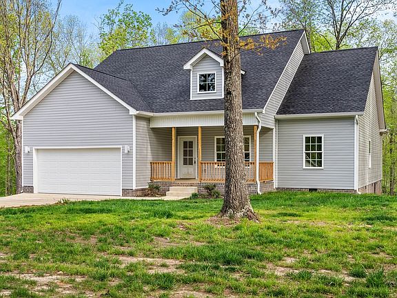 Tucked away on two acres, right outside of city limits, this beautiful new construction home is the perfect oasis featuring an open floor plan and vaulted ceilings. Enjoy the covered front porch, covered back patio with ceiling fan or your electric fireplace. in the living right below a convenient TV mount ready for you! LVP flooring throughout with beautiful tile in the bathrooms. The kitchen baosts with tons of recessed lighting, granite countertops, stainless steel appliances and backsplash. The primary bedroom features a walk-in closet, a nice tub to relax, apart from the beautifully tiled shower. Do not miss this opportunity on this little slice of country, close enough to the city for convenience, but on the quiet side of the county line, with no HOA or city taxes!