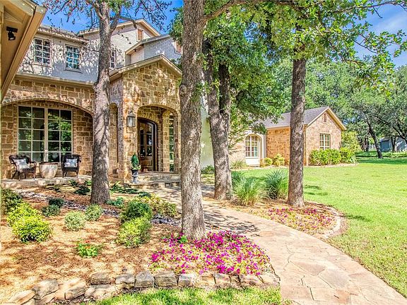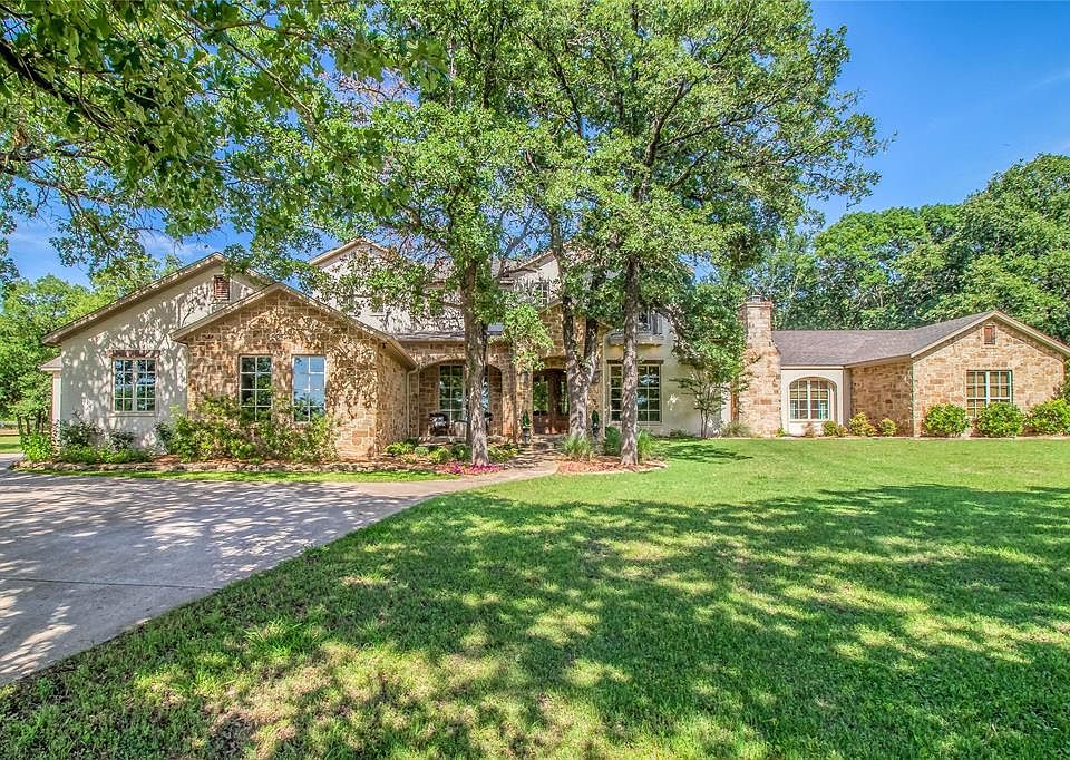 Superior Quality & Exquisite Finishes Tucked Away On This Private 5 Acre Estate in Aledo ISD. This Open Floor Plan is an Entertainer's Dream Offering an Elegant Flow Boasting a Gourmet Kitchen w Top of the Line Appliances, Designer Tiles & an Oversized Island. Large Windows Across the Back of the House Allow for an Abundance of Natural Light & Views to the Private Wooded Backyard. Enjoy the Main Level 2nd Living Room w Wet Bar & Fireplace. Master, 2 Bedrooms & 3.1 Bath Down. Game Room, 2 Bedrooms & 2 Bath Up. Escape to the Secluded Backyard w Lush Landscaping, Outdoor Kitchen, Fire Pit & Beautiful Mature Trees. 50 x 40 Shop w 1000 sq ft Guest Quarters complete w kitchen, bath, bedroom & living. Deep Water Well.