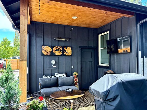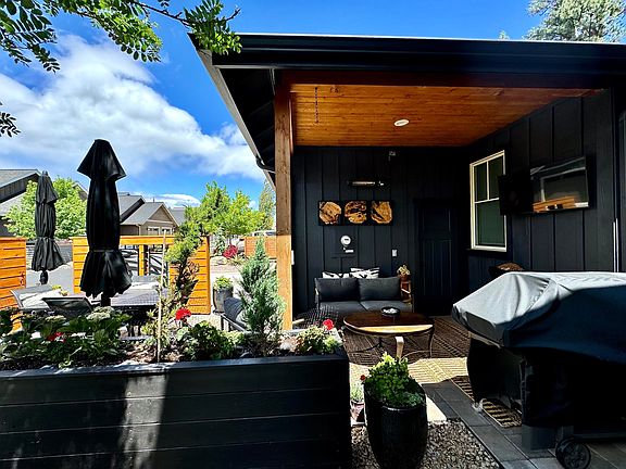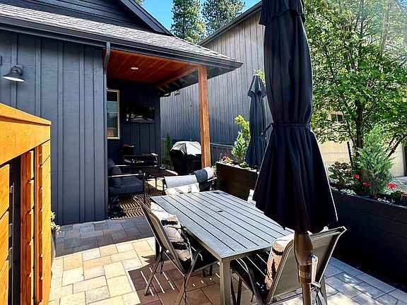 Experience luxurious, lock-and-leave living in this stunning 2241sq ft home in the coveted Pine Meadow Village. This stylish, 1-level retreat features a freshly painted exterior with chic colors, a cedar front porch, and a dreamy back patio with pavers,water feature, privacy screens,cedar ceiling,and low-maintenance landscaping on a drip system. Inside, enjoy new paint, upgraded barn doors, modern light fixtures, and all new hardware. The gourmet kitchen boasts stainless appliances, a farm sink, and LED lighting. Indulge in the hall bath's new walk-in tile shower, quartz counter, and elegant fixtures. The primary bath offers Kohler fixtures, a tall glass-enclosed walk-in shower, a soaking tub, double sinks, and ample storage. The primary bedroom features a California Closet system and a barn door. With new flooring in two bedrooms, an office, and a guest room, plus an upstairs bonus room with built-in bookcases, LED lighting, and Cascade Mountain views, this home is perfect for you!
