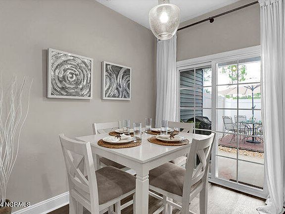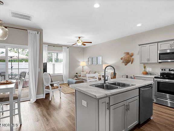 Beautiful, better than new townhome with 3 bedrooms and 2.5 baths. This two year old home is in immaculate condition. Stylish and modern design, with luxury vinyl plank flooring throughout the first floor plus all of the bathrooms. White painted cabinetry and stainless steel appliances in the kitchen. The dining area has a sliding door leading to a nicely designed outdoor space with a covered back patio, a wooden deck, landscaping and a fence, creating a private little oasis great for chilling or grilling. Spacious master suite with a large walk-in closet, double sink vanity and a walk-in shower in bathroom. This townhome also has a one car garage and driveway parking. Additional guest parking is available just across the street. Desirable location, just minutes from MARSOC and a short distance from the beaches of Topsail and the back gate of Camp Lejeune.