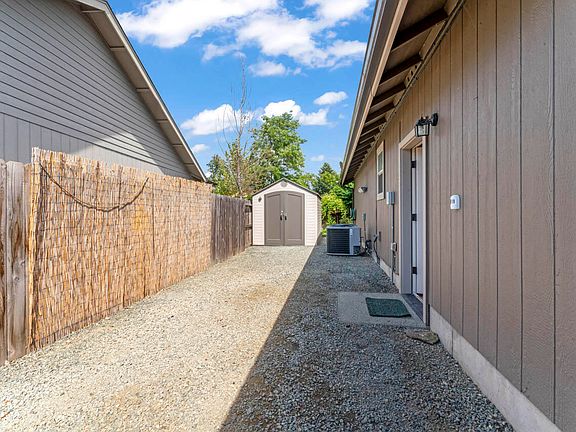 One owner and practically new! This low maintenance property is ideal with parks, river, downtown all close by. Oversized driveway for extra vehicles and boat, and toy parking with open fence on left of house. All fenced with storage shed, landscaping and covered patio! Vaulted ceiling great room with kitchen and 3 bedrooms and separated from each other. Finished garage with shelves and garage door opener. In ground sprinklers and drips make this property turn key and ready for move in! Carpet in living room can be removed as it's just for ambience. Large primary bedroom with bath and walk in closets. Put this one on your showing list today!